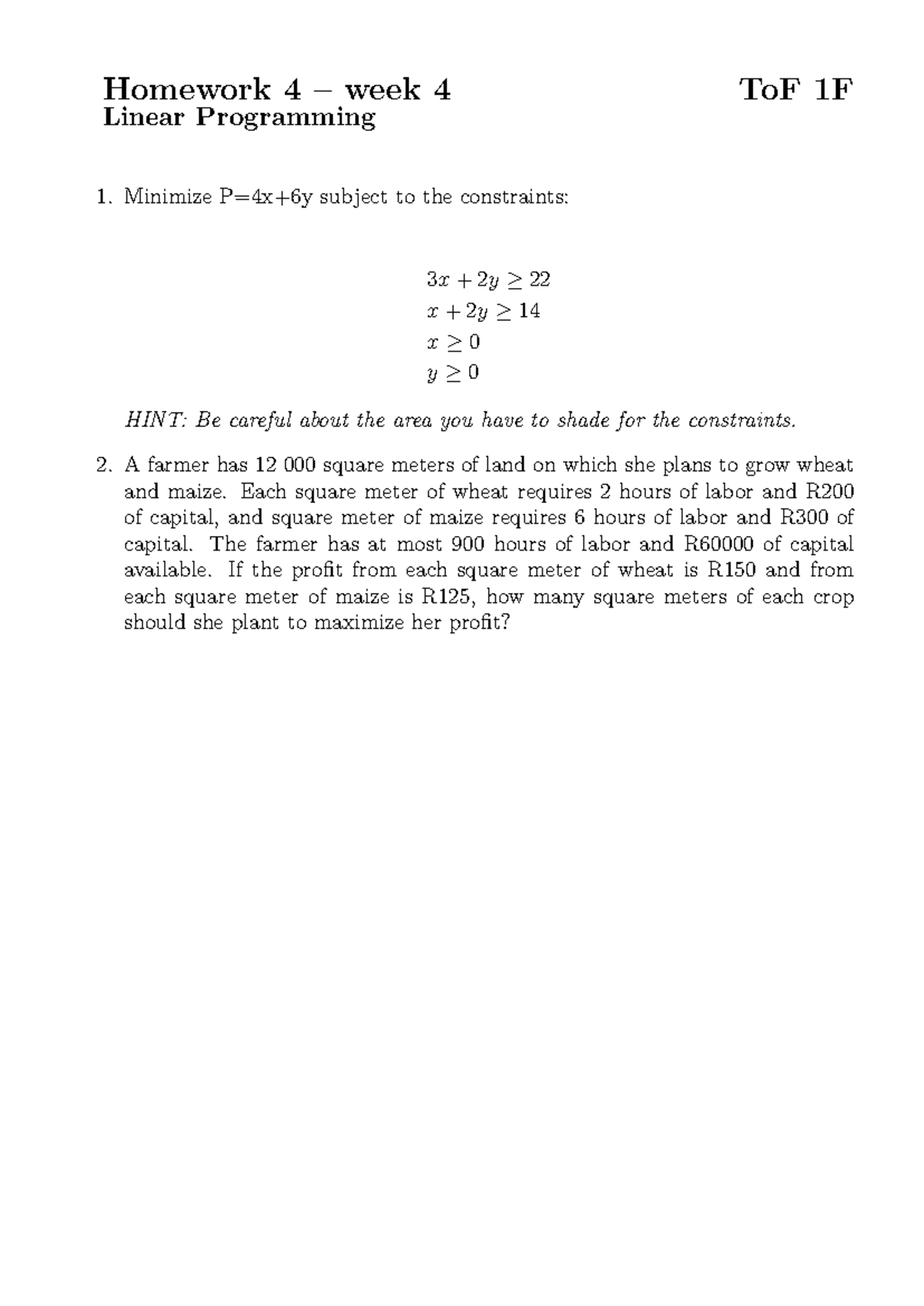 To F1FHomework 4 - half - Homework 4 β week 4 ToF 1F Linear Programming ...