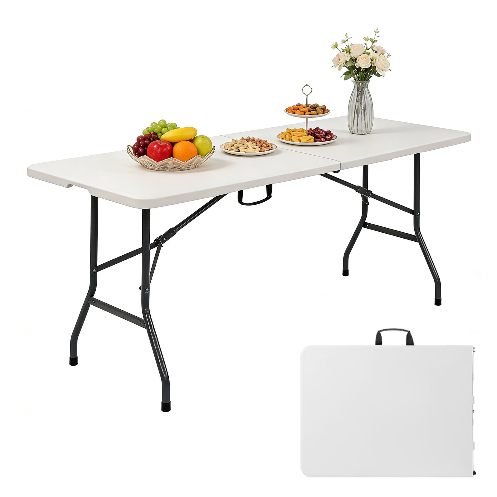 6 Feet Folding Table, Portable Half-Fold Design with Handles, Heavy ...
