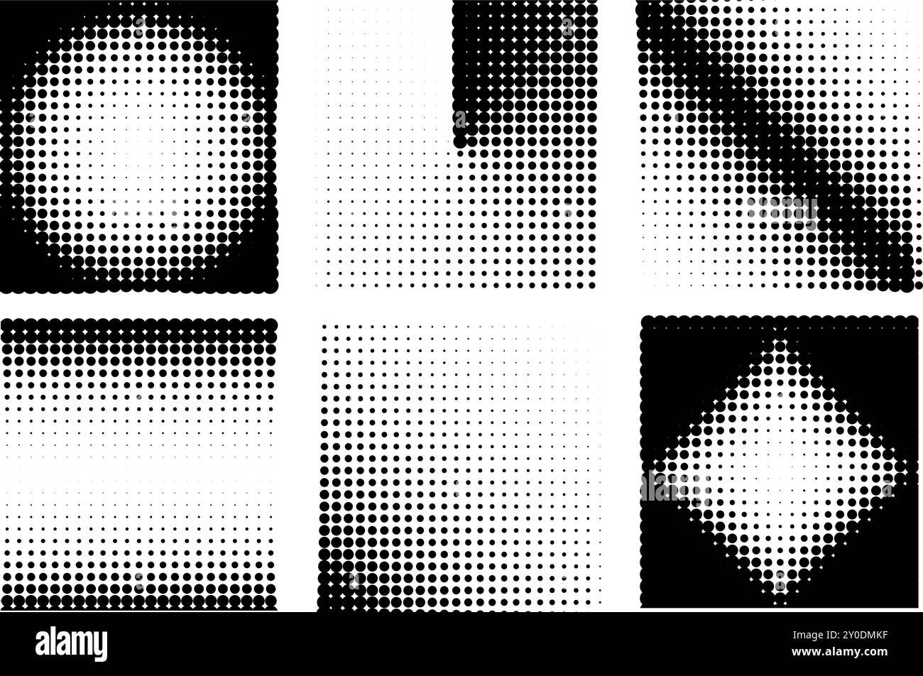 Collection Of Halftone Dot Pattern Background. Monochromatic Halftone ...