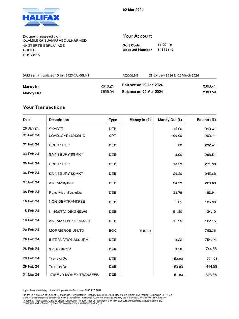 Halifax Bank Statement Example 2025 | PDF | Banking | Financial Services