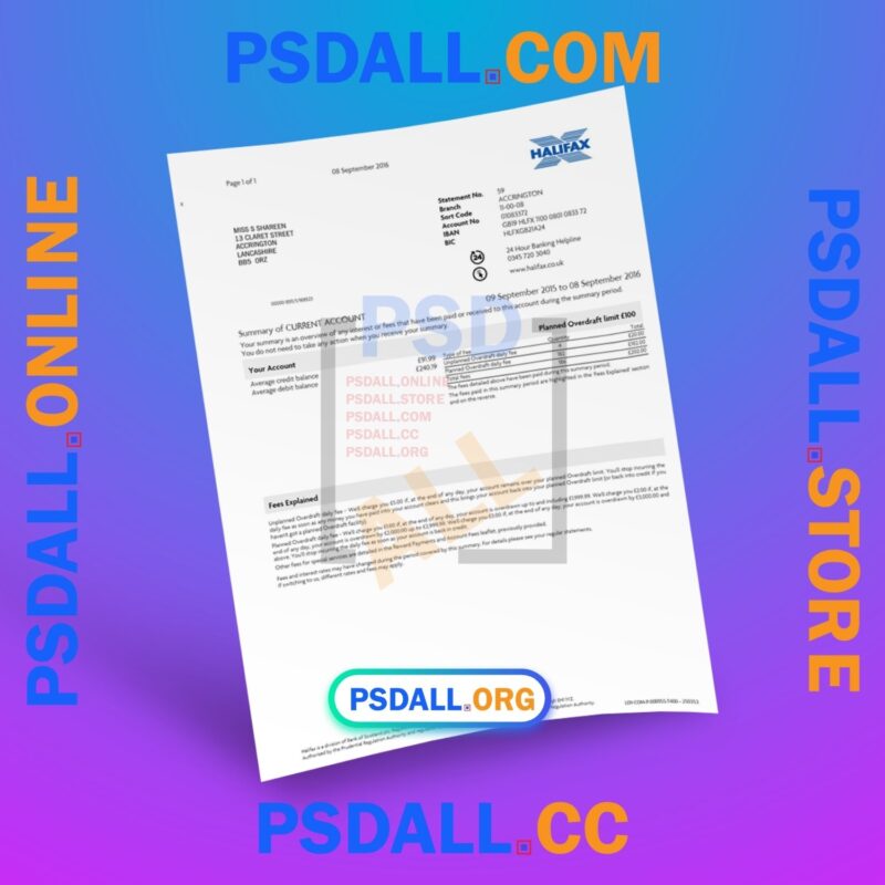 Owl PSD | High-Quality Fake Template - UK Halifax Bank Statement Template