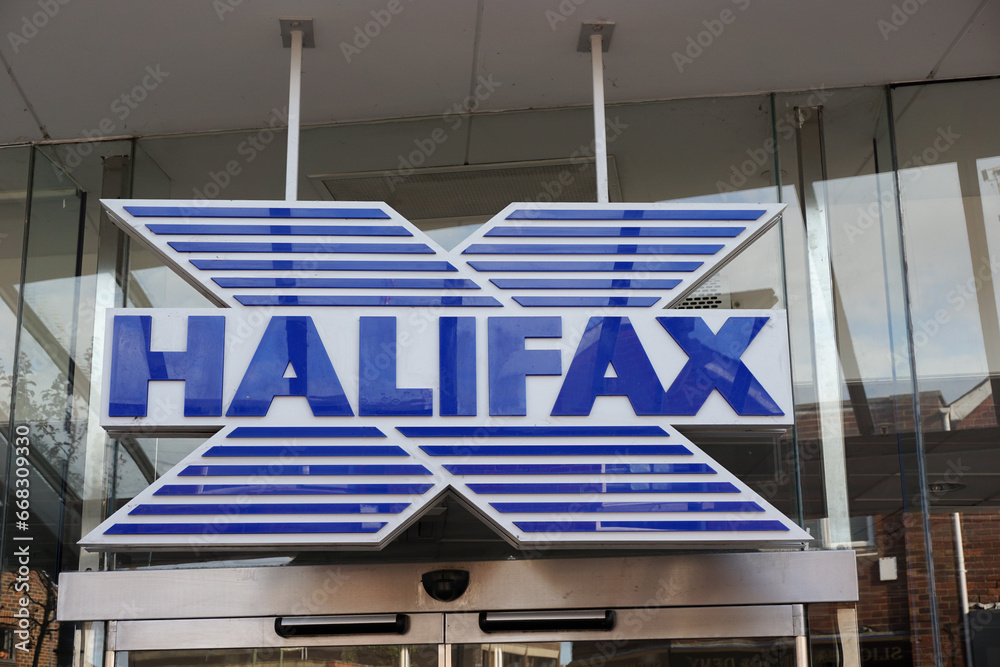 Halifax bank sign England United Kingdom Stock Photo - Alamy