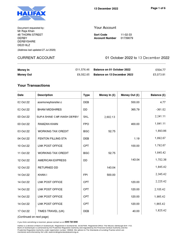 United Kingdom Halifax bank statement 3 - 6 months Word and PDF example ...