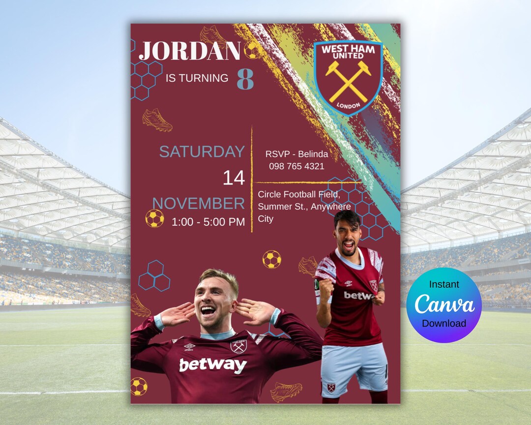 West Ham Football Party Invitation: Editable Soccer Invite - Etsy