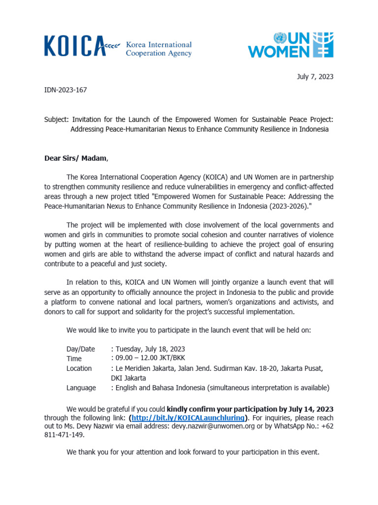 Invitation Letter For In-Person Participants - KOICA Launch Event | PDF