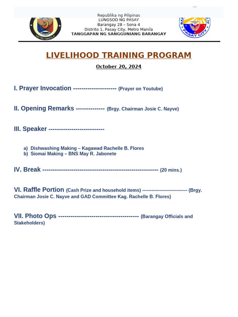 Skills Development Training For Livelihood Development Program PWD | PDF