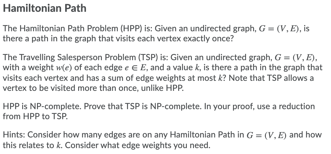 Solved 7. The Hamilton Path Problem (HPP) is the following | Chegg.com