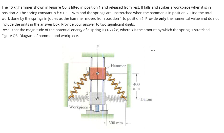 Solved The 40 kg hammer shown in Figurre Q5 is lifted in | Chegg.com