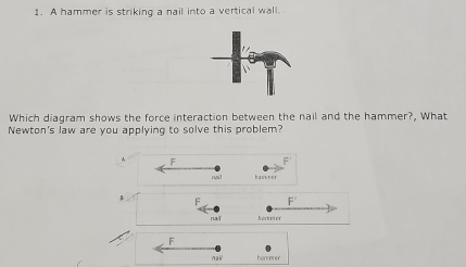Solved: A hammer is striking a nail into a vertical wall. Which diagram ...