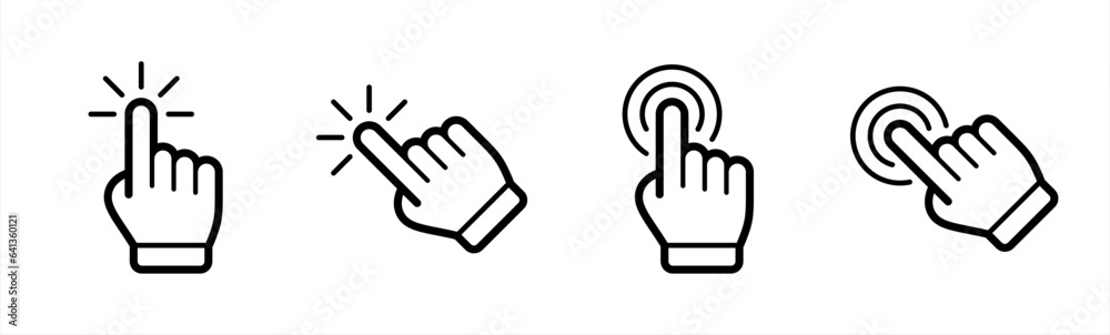 Set of hand click icons. Flat and line art style. Design for web and ...