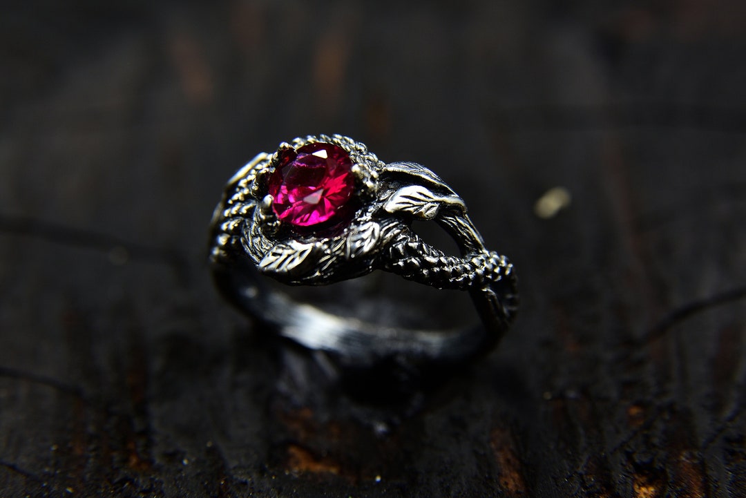 Handcrafted Forest Ruby Dragon Scale Silver Ring Unique - Etsy