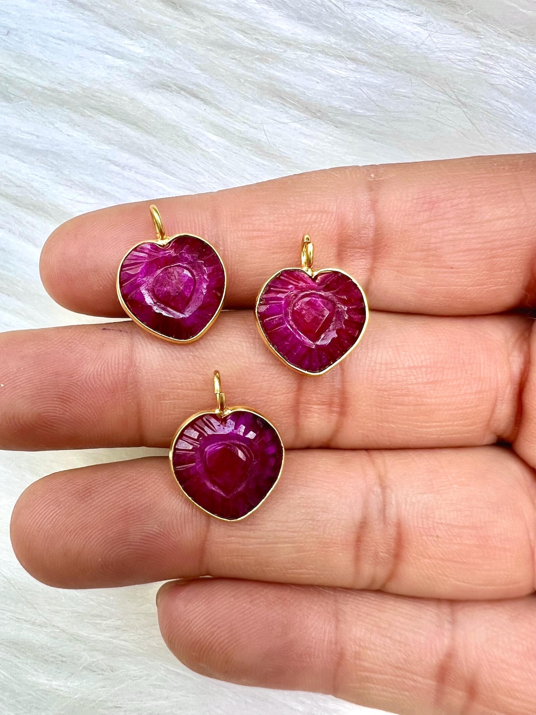 Hand Carved Ruby Charm/heart Shape Pendant/hand Carved Ruby Bead/carved ...