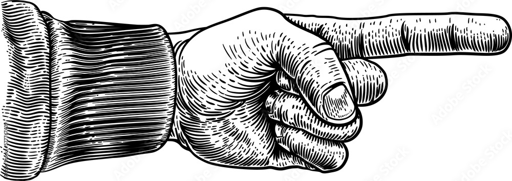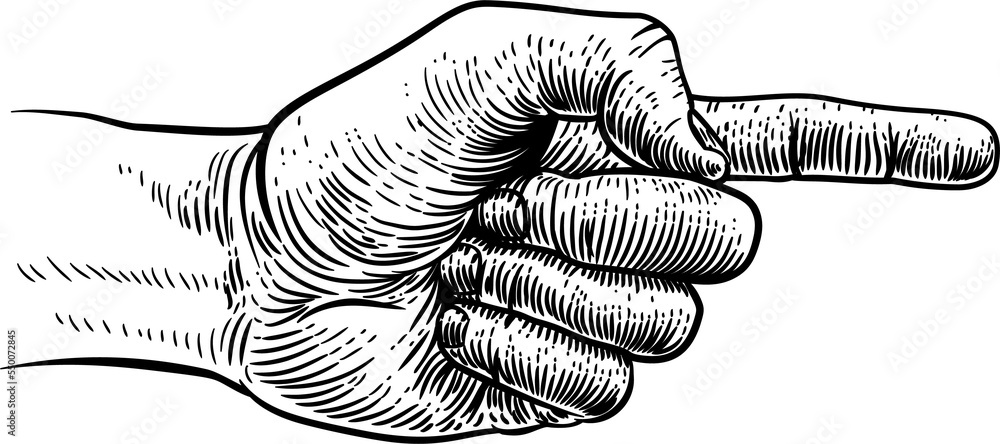 Hand Pointing Direction Finger Engraving Woodcut Stock Illustration ...
