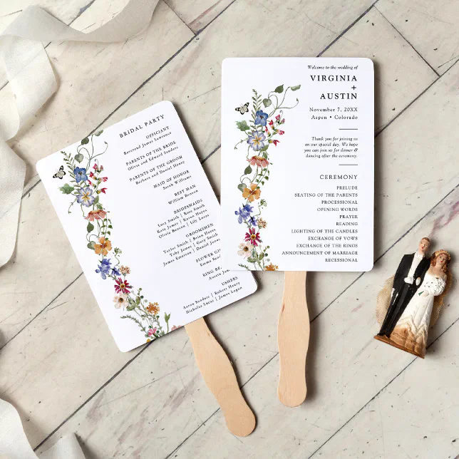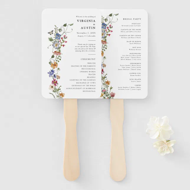 Floral wedding HAND FANS program order of service | Hand fans for ...