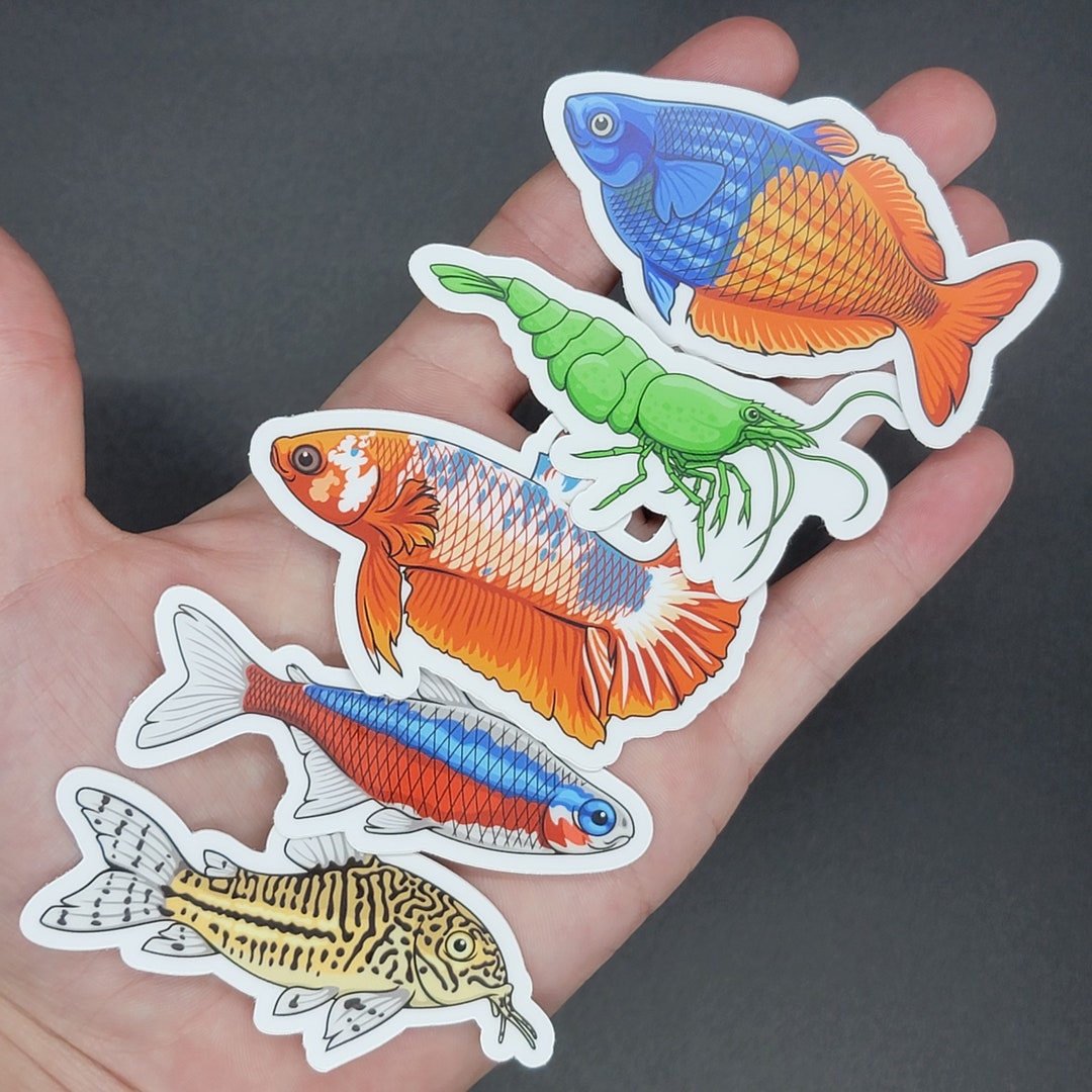 Handmade Aquarium Fish Sticker Pack, Set of 4 Glossy Waterproof Vinyl ...