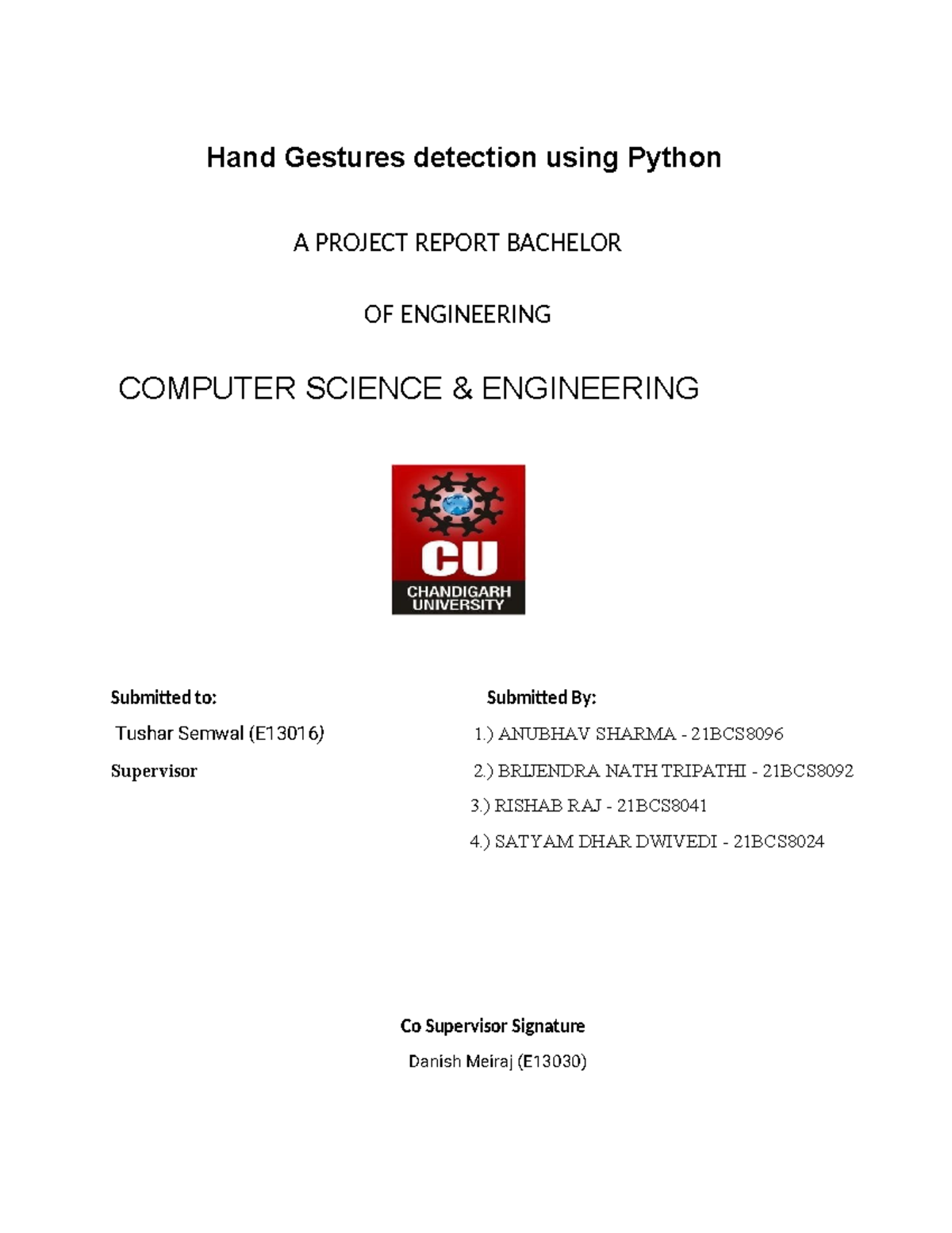 Detection of Hand Gestures Using Python: Phase II Report (E13016) - Studocu