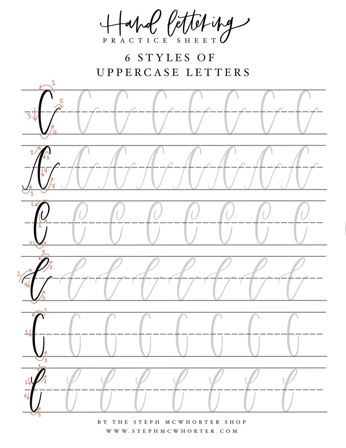 Bundle 6 Styles of Hand Lettering Letters Practice Sheets, Uppercase ...