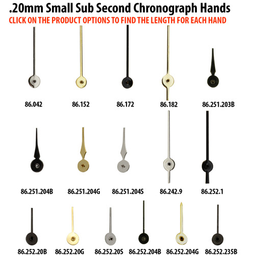 Small Sub Second Chronograph Hands For Watches Hole Size .20mm