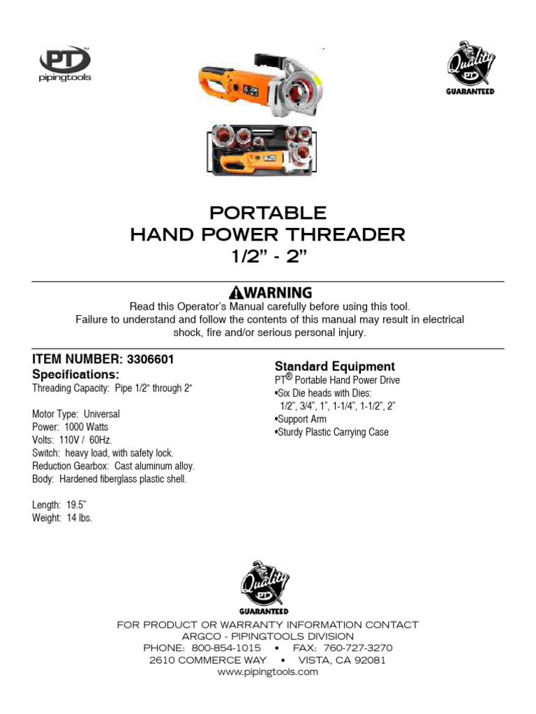 Hand Power Threader TechData | PDF | Switch | Pipe (Fluid Conveyance)
