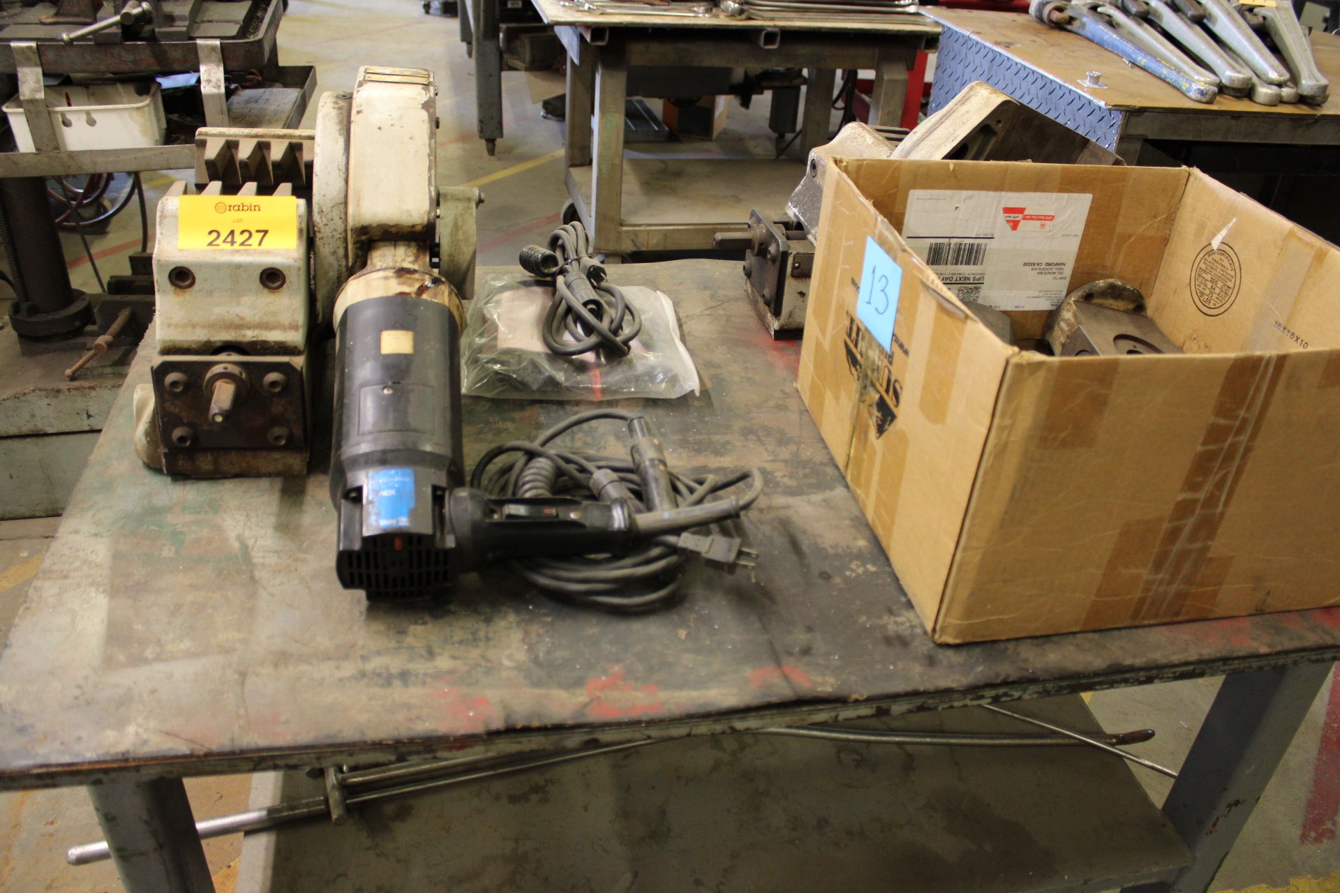 Rigid hand held pipe threader with attachments and mobile steel table ...