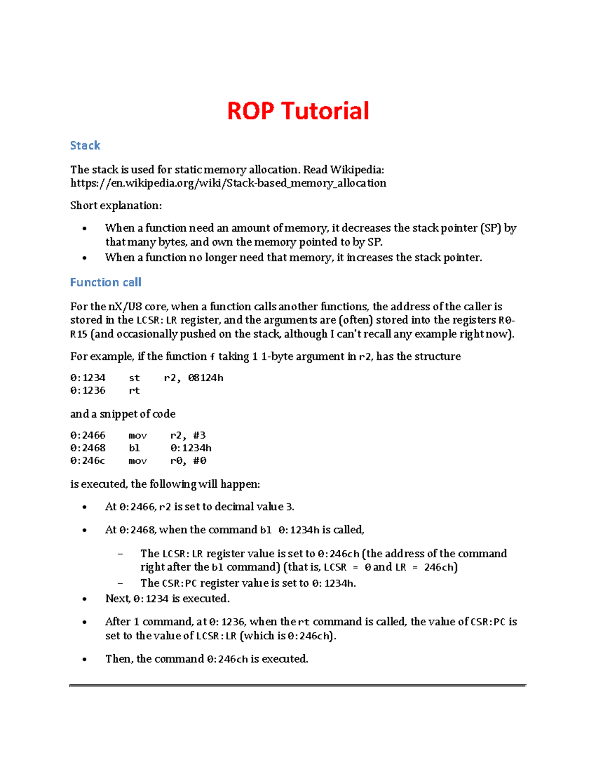 ROP tutorial - ROP tut - ROP Tutorial Stack The stack is used for ...