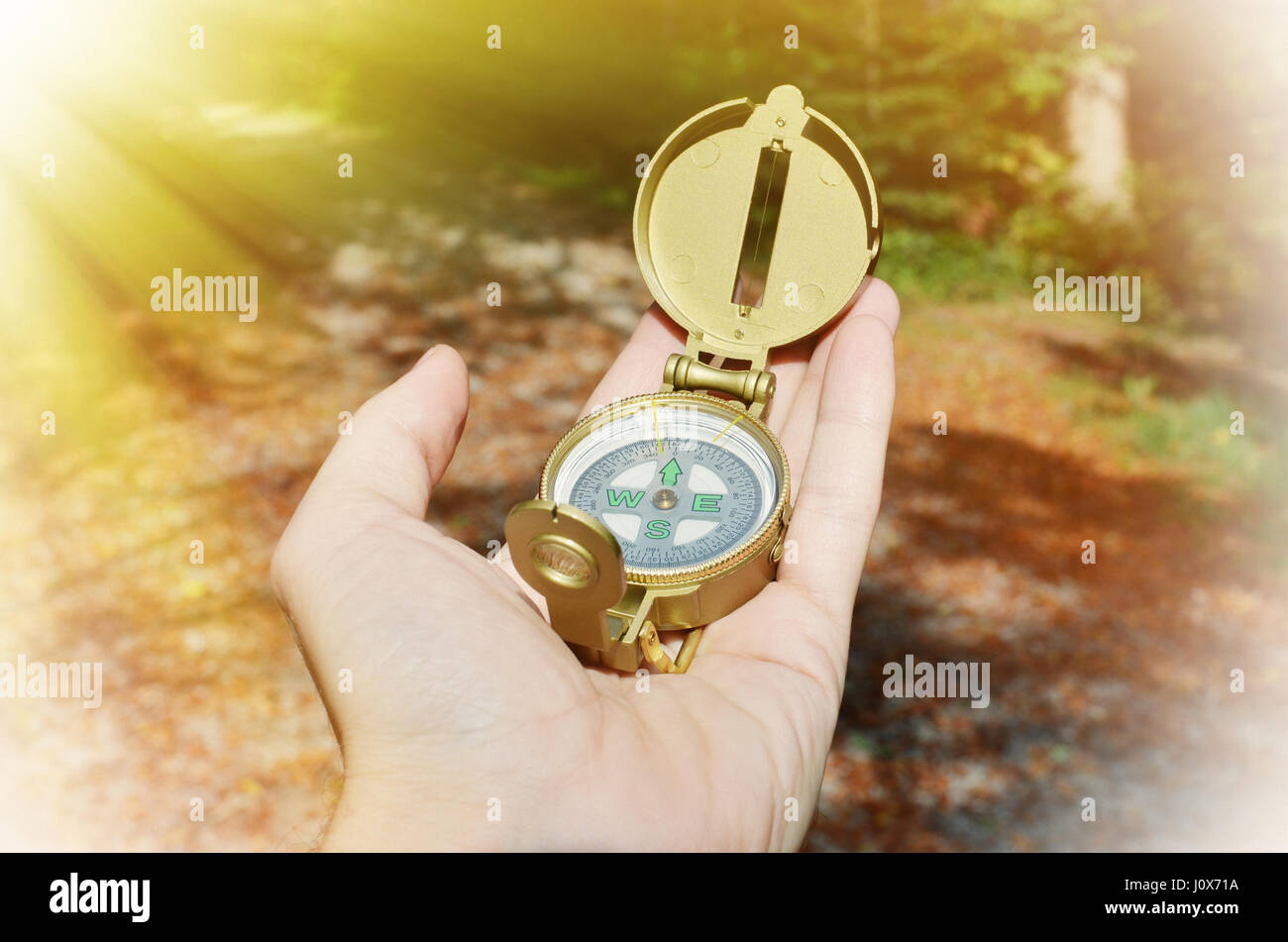 820+ Human Hand Holding A Compass In The Forest Stock Photos, Pictures ...