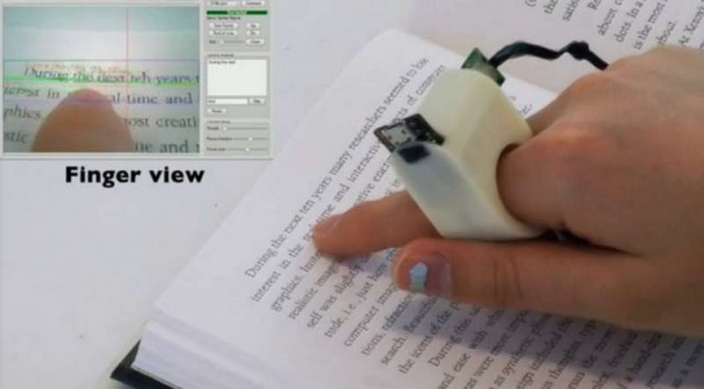 Side facing view of the Smart Reader HD with a hand holding onto the ...