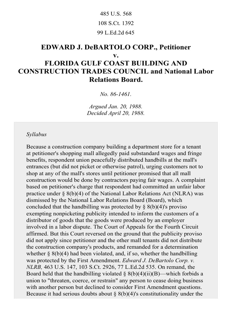 DeBartolo Corp v. NLRB: Handbilling Case | PDF | National Labor ...