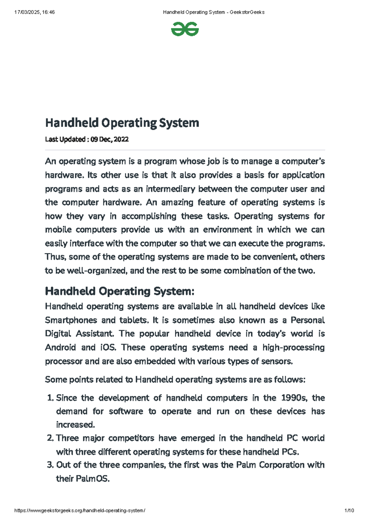Handheld Operating System - Geeksfor Geeks - Handheld Operating System ...