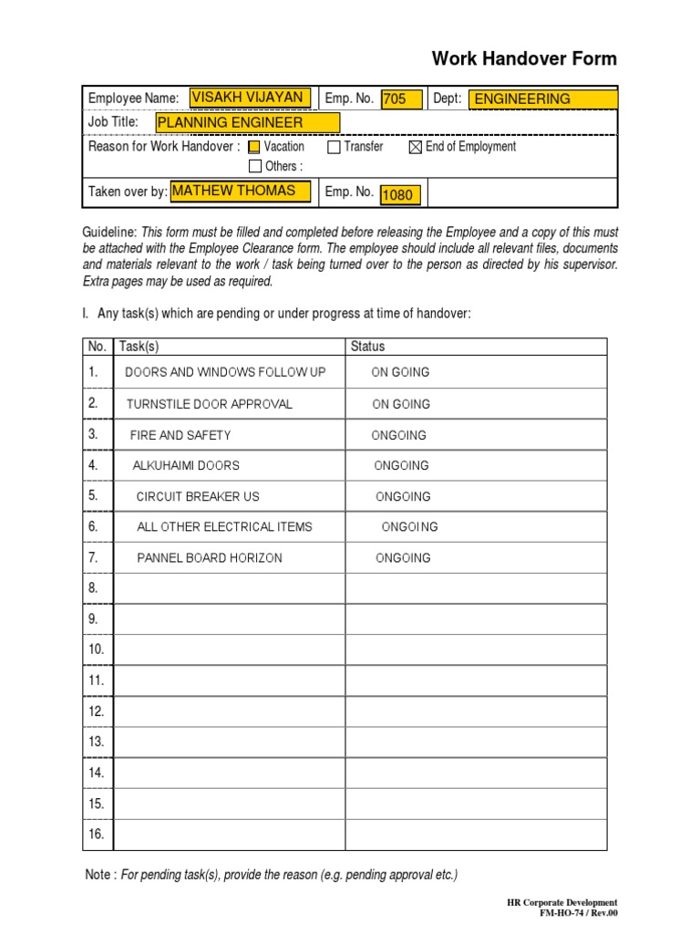 Exit Employee Handover Form Format at Rebecca Bowens blog