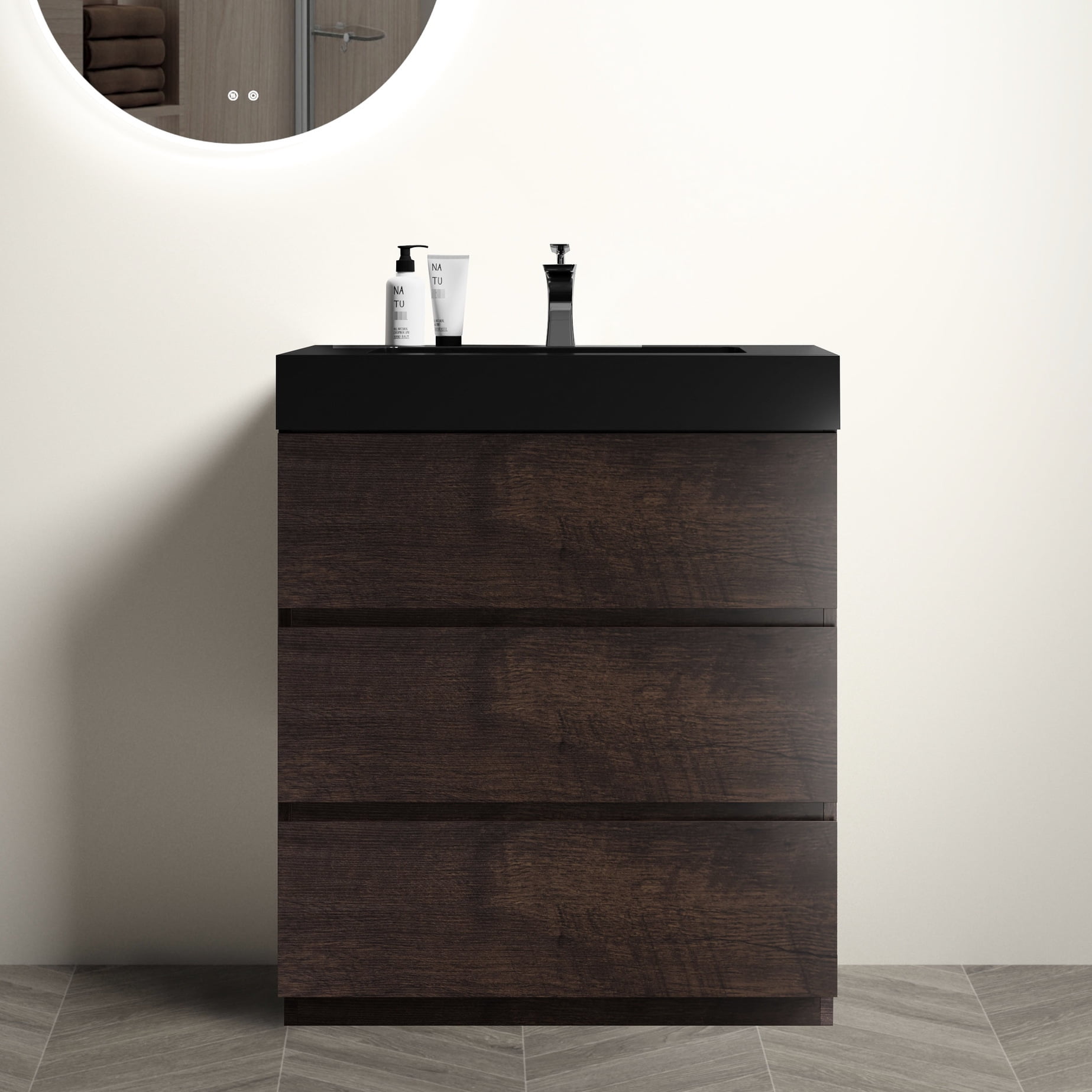 Vanity for Bathroom / Black Sink, Handleless Drawers, Soft-Closing ...