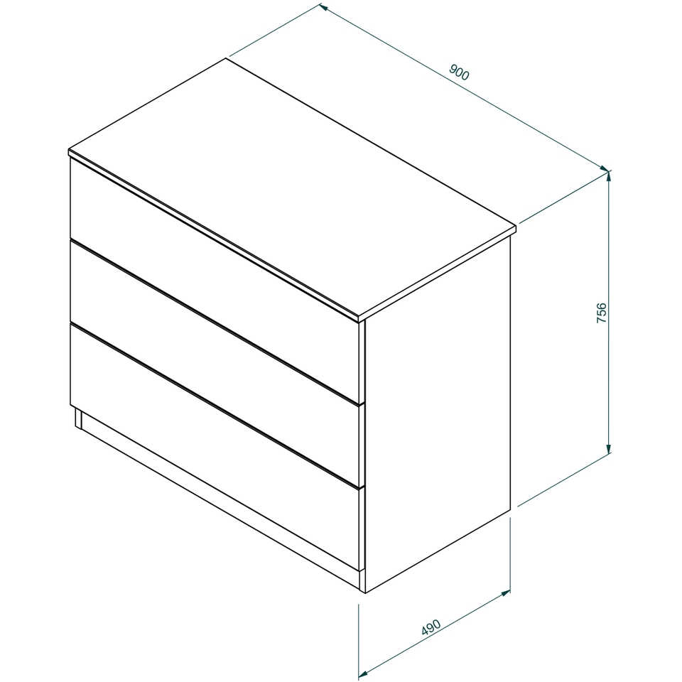 J-Pull Handleless White 3-Drawer Single Chest | Bedroom Kit