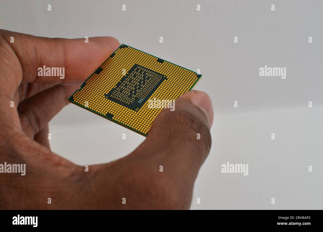 Computer engineers hand is holding cpu processor Stock Photo - Alamy