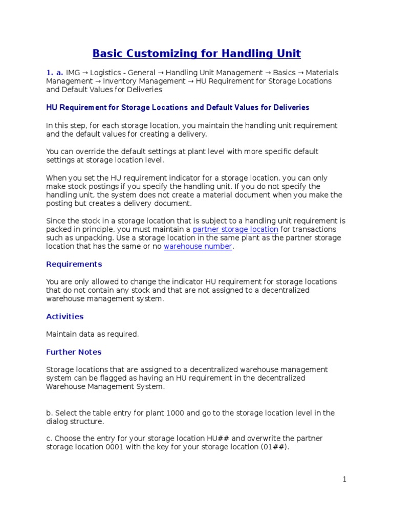 Basic Customizing For Handling Unit | PDF | Warehouse | Logistics
