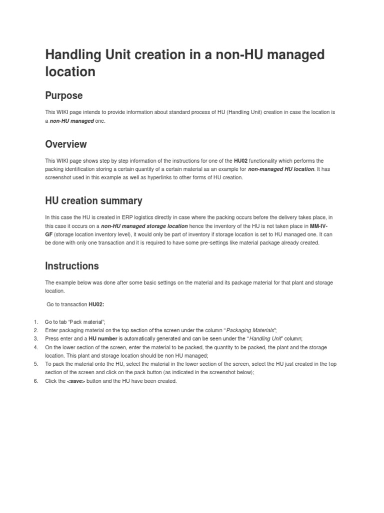 HU Creation in Non-HU Managed Locations | PDF | Warehouse | Logistics