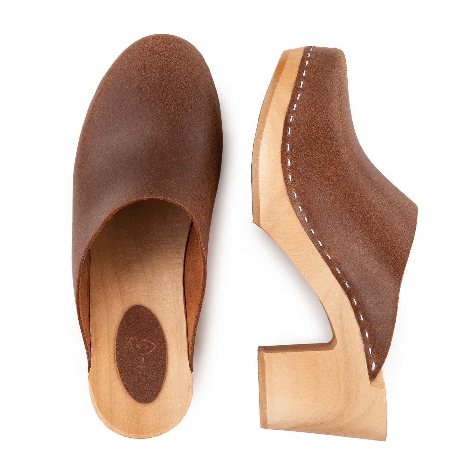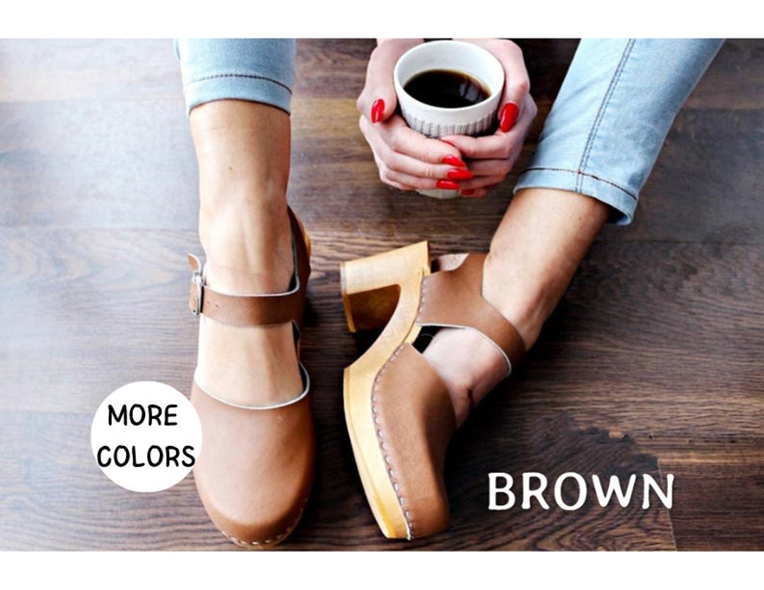 Leather clog brown wooden Swedish Clogs handmade slingback | Etsy