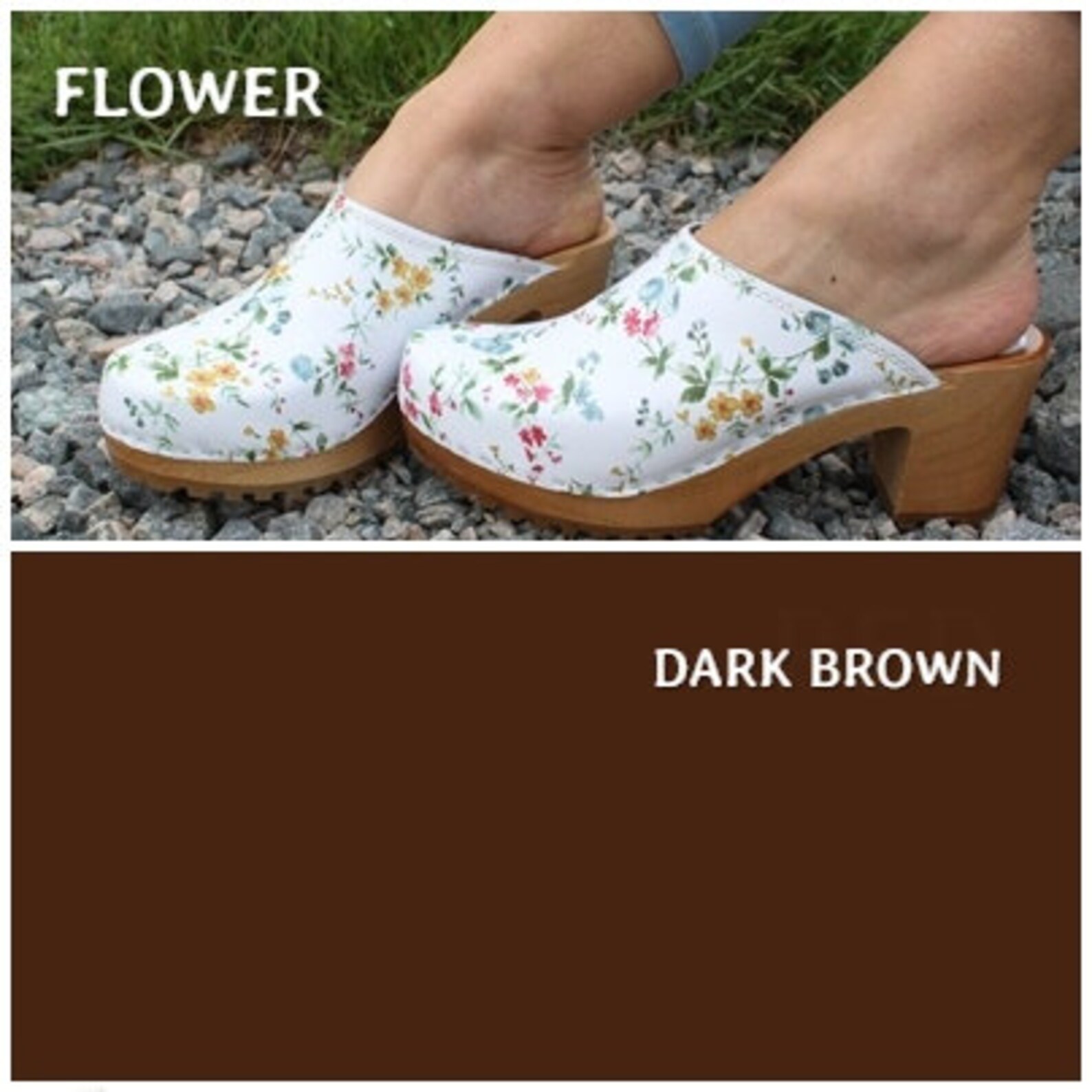 Floral Leather Clogs: Handmade Wooden Sole Scandinavian Shoes - Etsy