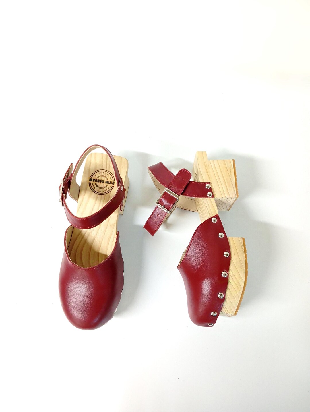 Handmade Wood Clogs Cube Cut Burgundy - Etsy