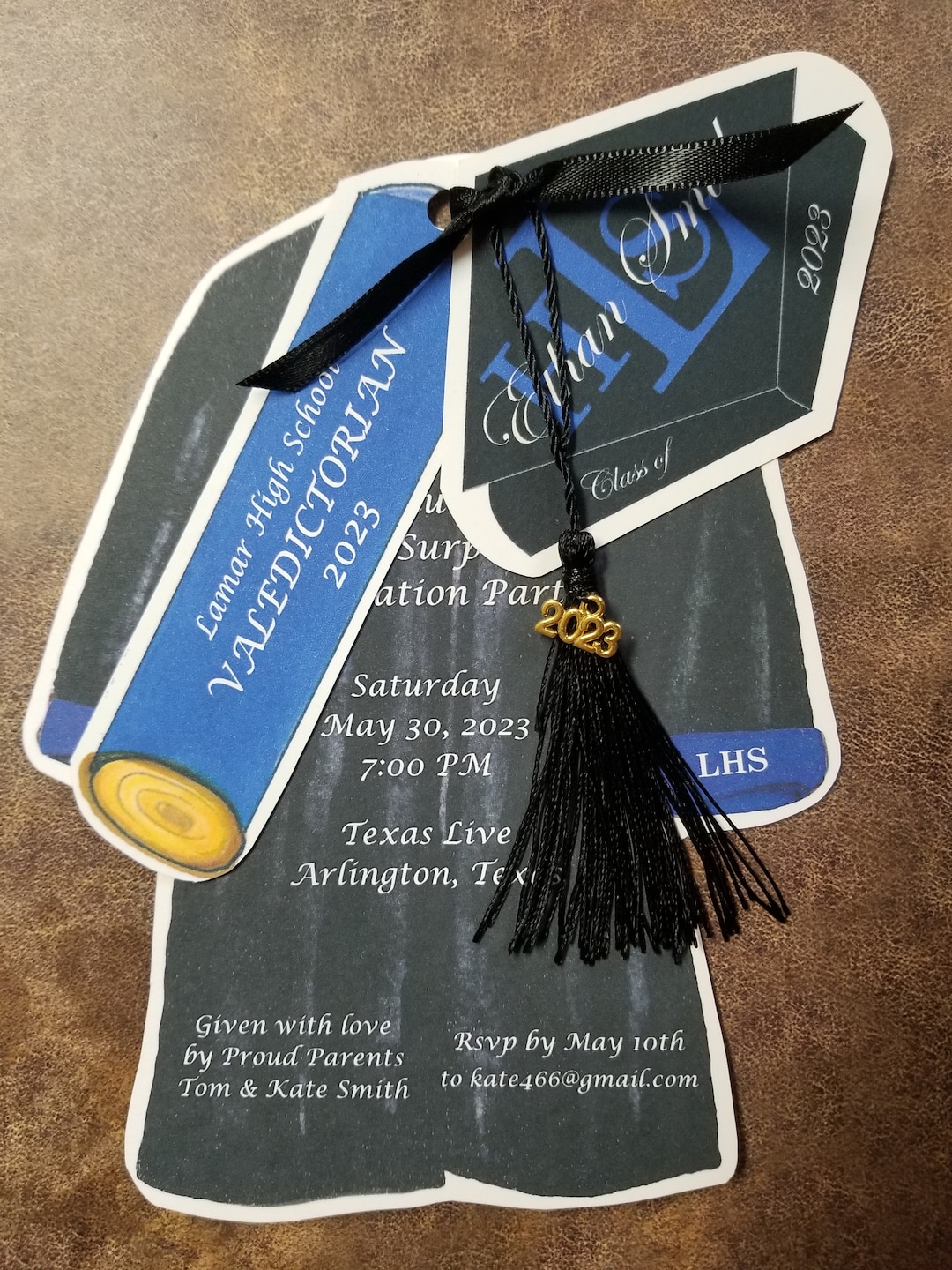 Custom, handmade, graduation cap styled invitation - complete with t ...