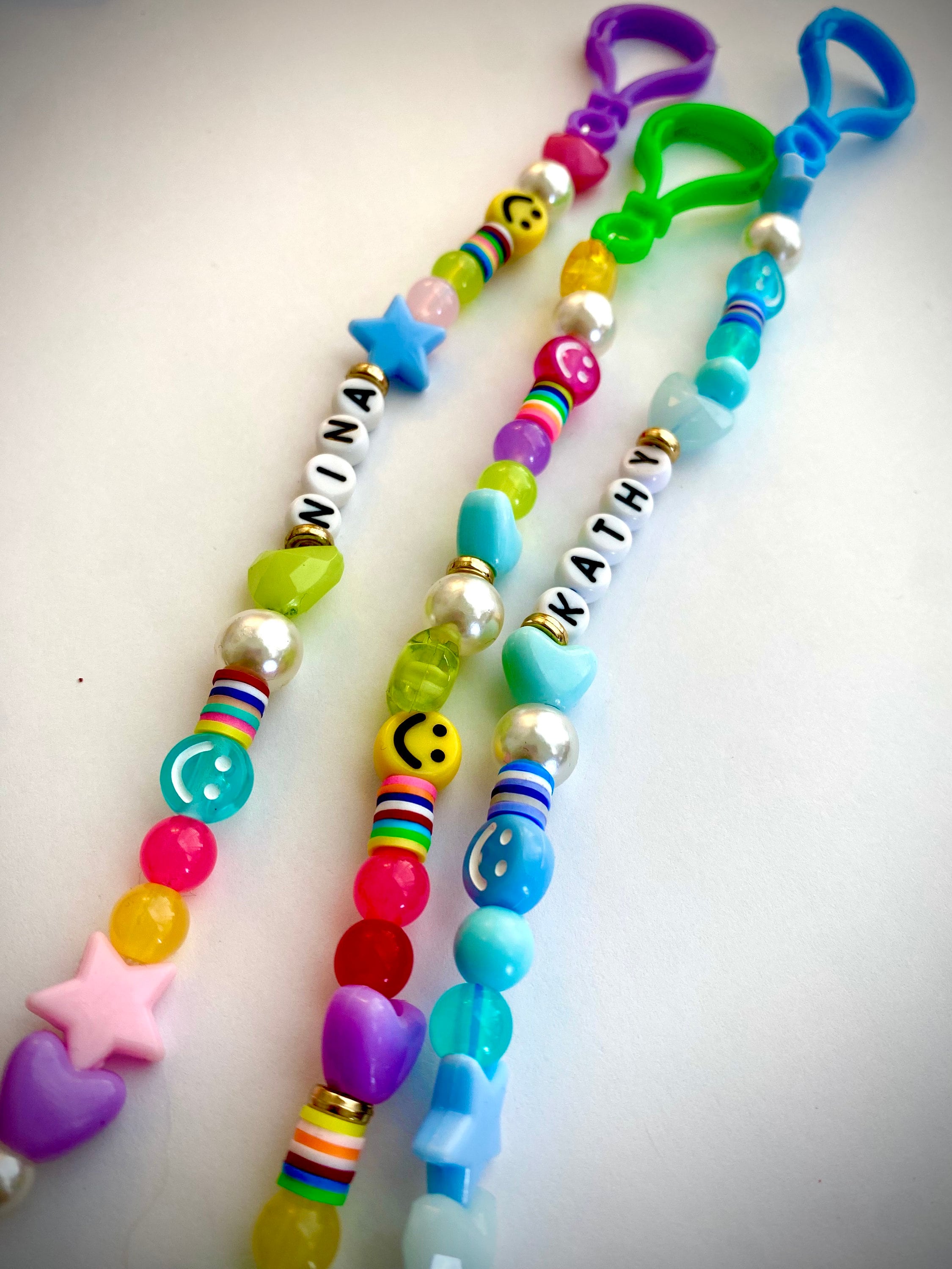 Custom Beaded Wristlet Keychain | Personalized 90s Y2K Charm | Angel ...