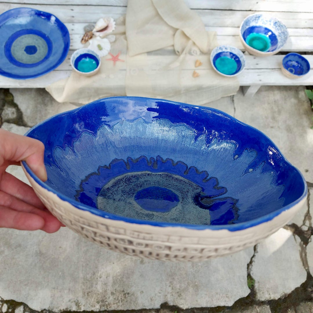 Unique Big Blue Platter | Handmade Ceramic Kitchenware