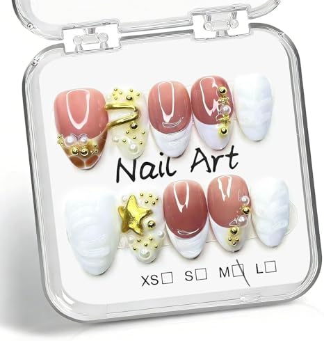 Amazon.com: 10 Pcs Handmade Press on Nails Short Almond Fake Nails with ...