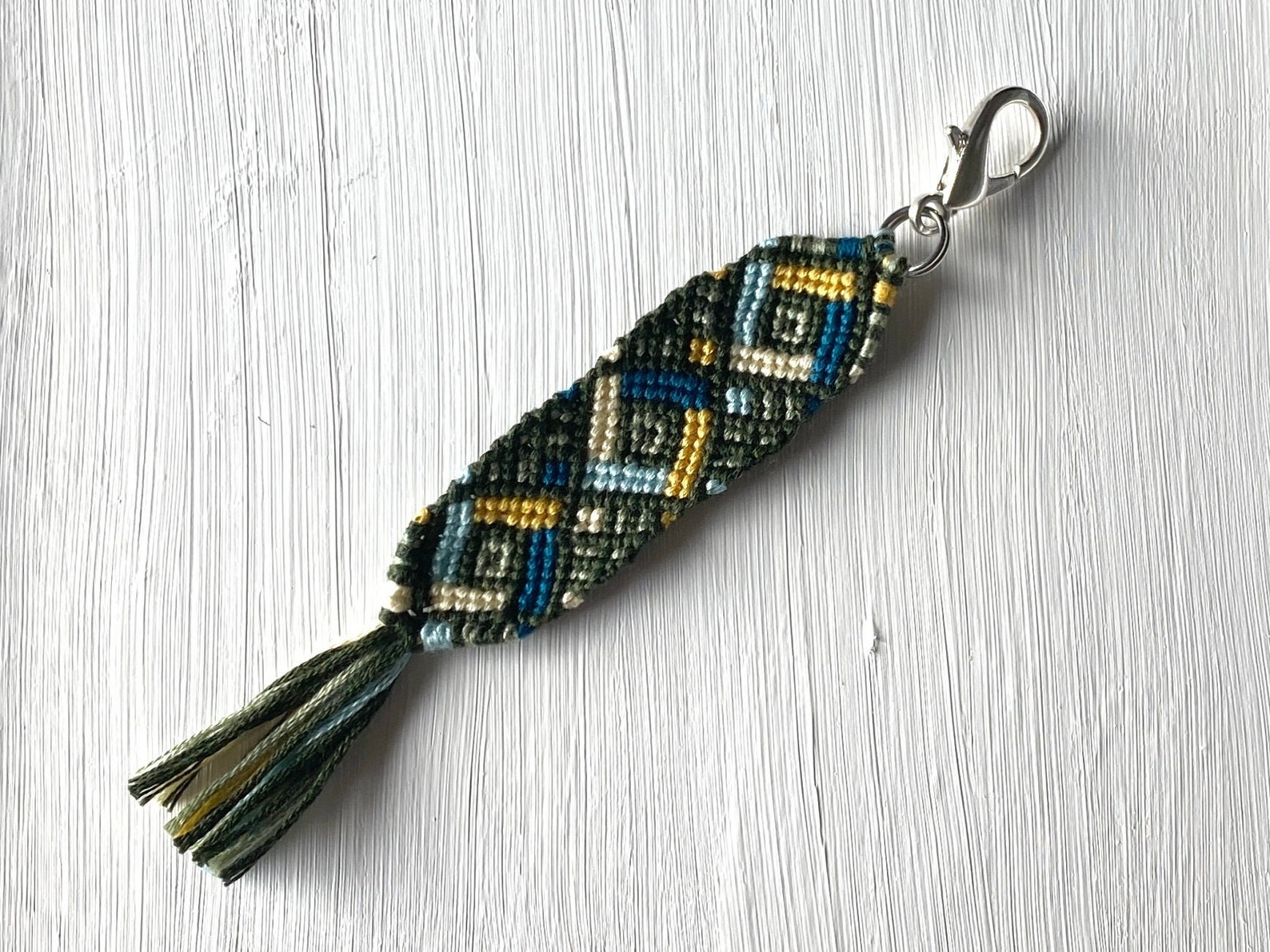 Handmade Thread Keychain: Yellow, Blue, and Green Ribbon - Etsy