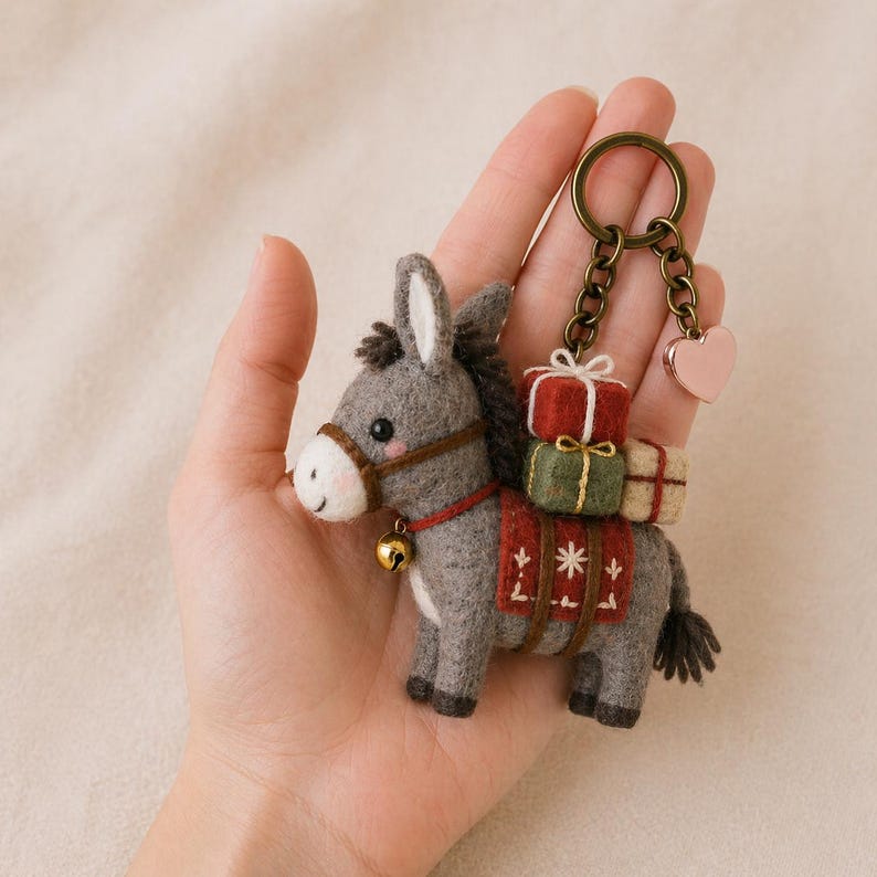 Handmade Wool Felt Donkey Keychain, Cute Small Animal Charm, Soft ...