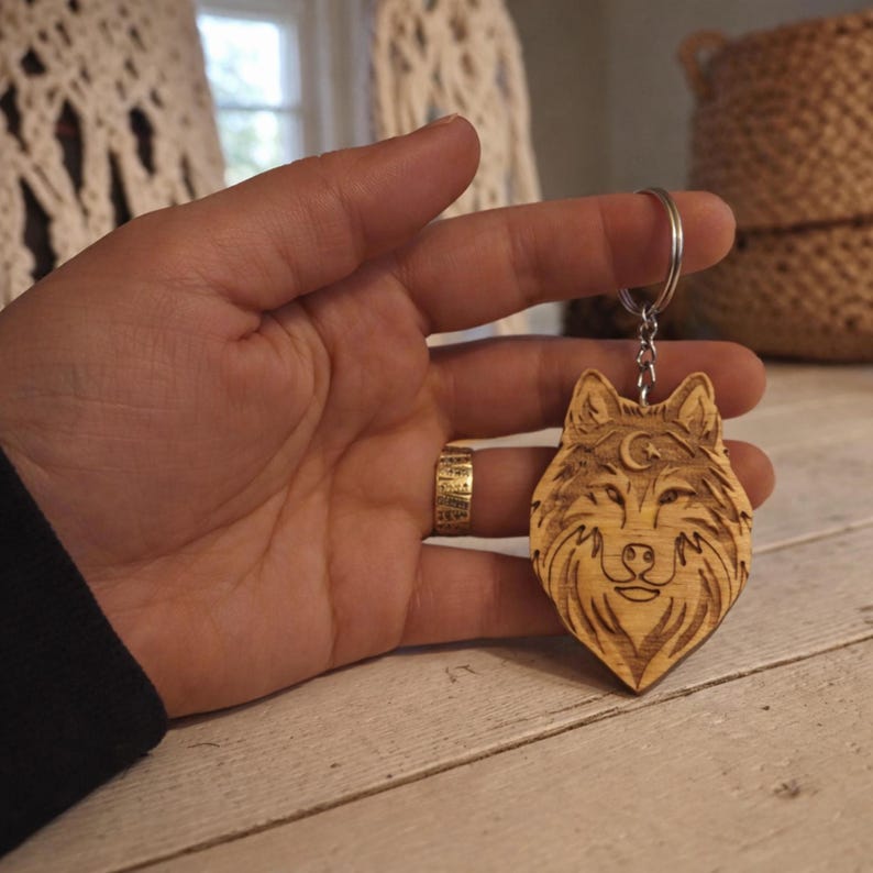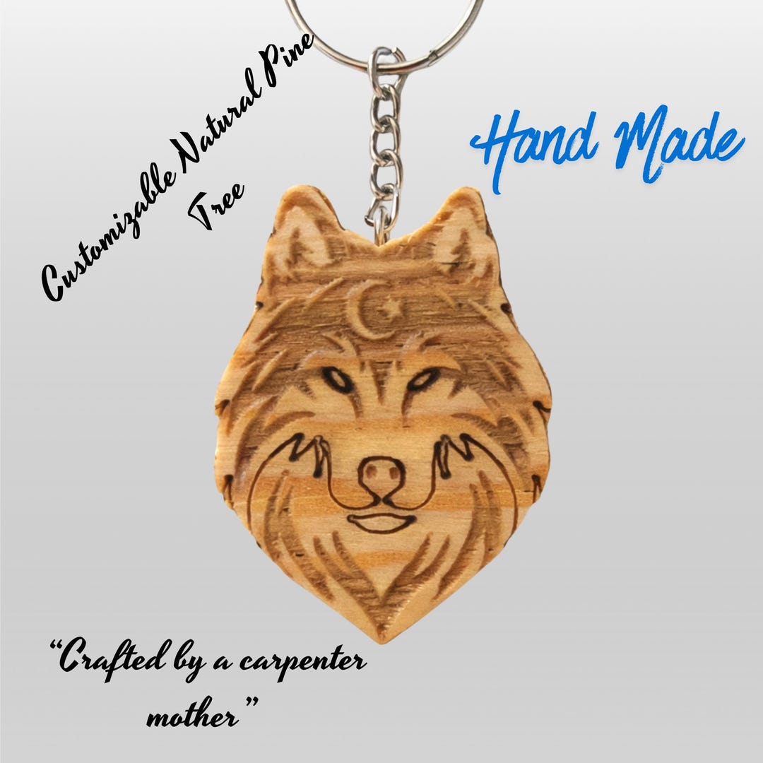 Handmade Wooden Wolf Keychain – Customizable Boho Charm, Car Accessory ...