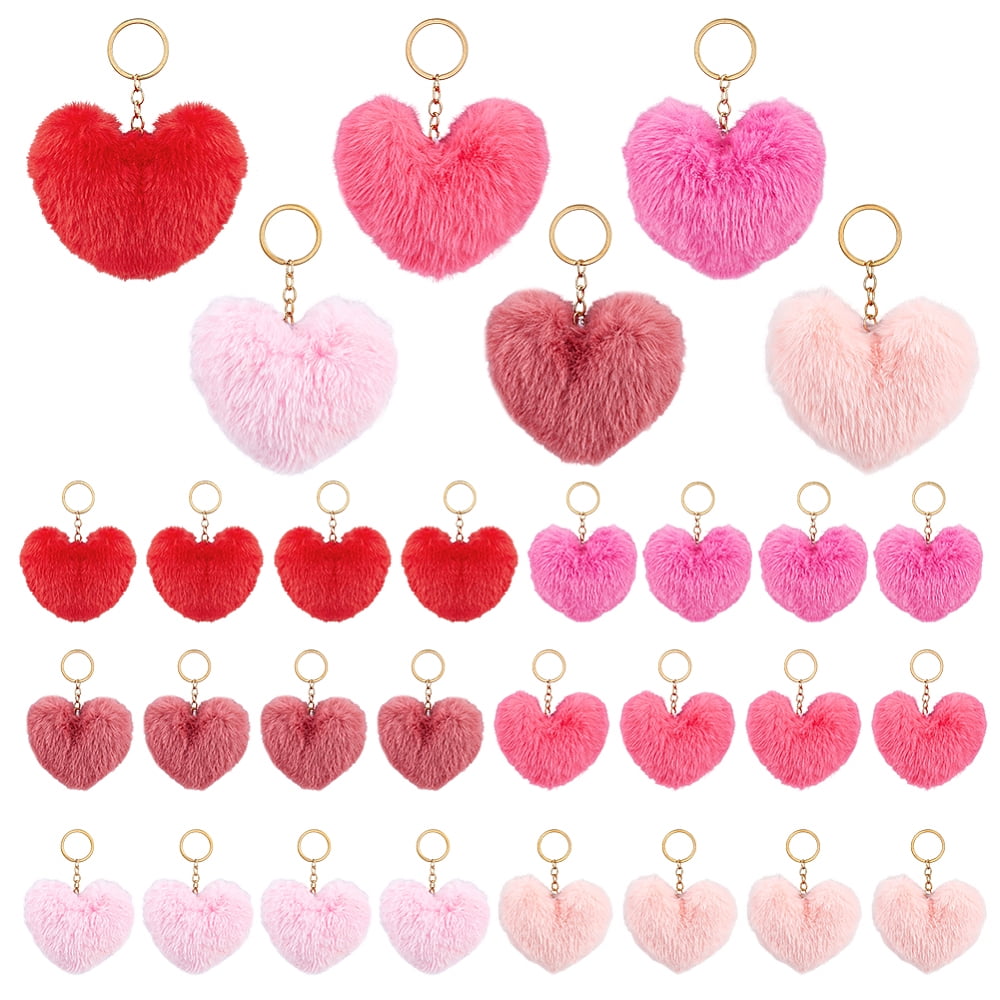 30Pcs 6 Colors Heart Polyester Rabbit Hair Pendant Keychains with Zinc ...