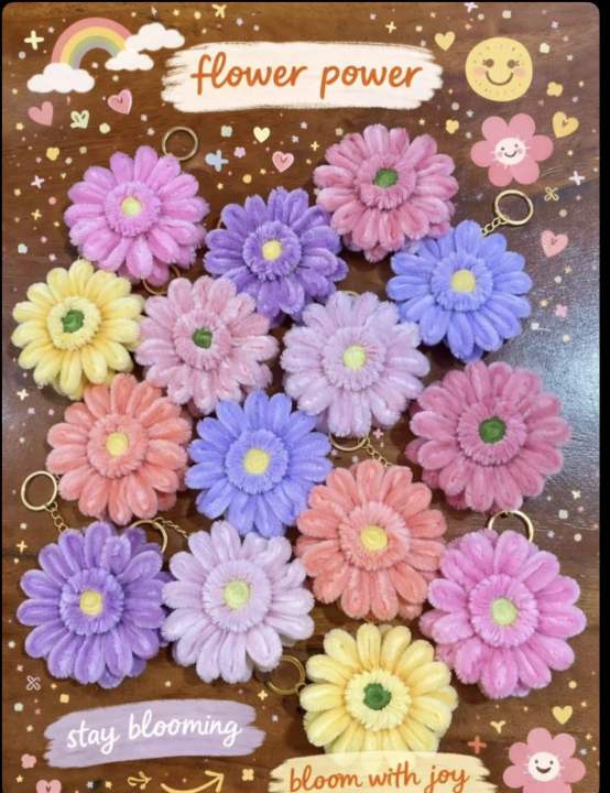 Handmade Pipe Cleaner Flower Keychain – Aesthetic Pastel Pink Daisy Bag ...