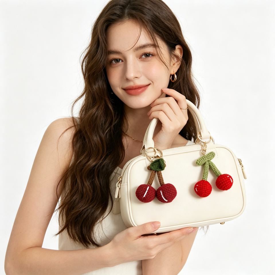 Handmade Cherry Keychain Yarn Crochet Fruit Accessory Exquisite ...