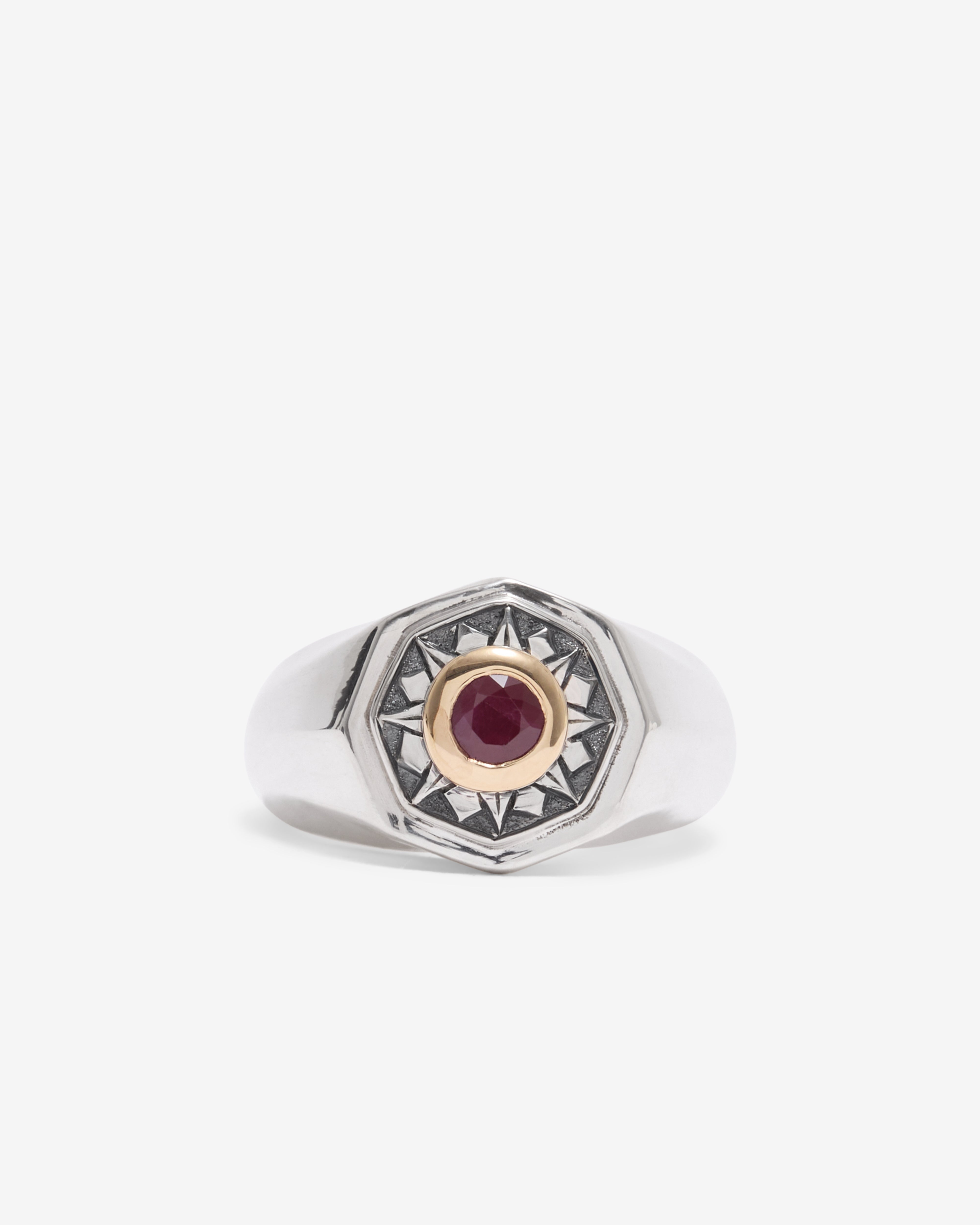 Duffy: Octagonal Ruby Signet Ring (Multi) | DSML E-SHOP