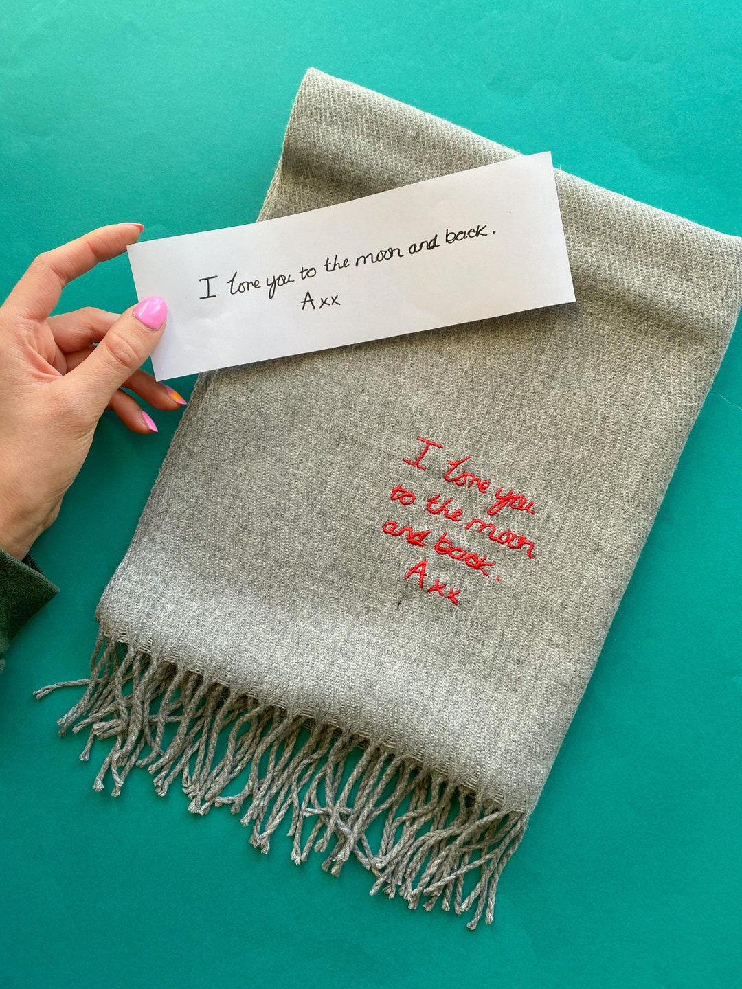 Personalised Handwriting Scarf Rock on Ruby - Unisex Custom Embroidered ...